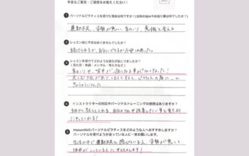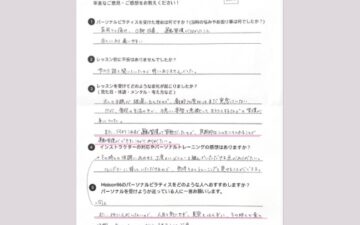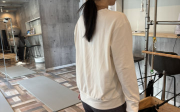 肩が上がり気味で、常に力が入ってしまう姿勢でしたが、回数を重ねる毎に腰や肩が力まない、自然な立ち方になりました♡