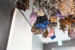 天井に沢山のドライフラワーが飾られております。